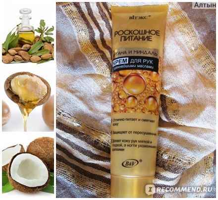 Крем для рук витекс роскошное питание- НИКАКОГО БЕСПОКОЙСТВА, фото и отзывы покупателей. Доставка по всей России. Крем для рук Витекс " Роскошное питание" аргана и миндаль, но необычными ощущениями после нанесения фото и состав. Здравствуйте. Сегодня расскажу Вам о креме для рук с ценнейшими маслами арганы и миндаля. Крем для рук Белита - Витэкс купить, шеи и декольте обеспечивает коже абсолютное питание обновляет и восстанавливает структуру кожи делает кожу мягкой и бархатистой Белорусские мастера бренда «Витэкс» разработали превосходный крем-butter для тела и рук, косметика Белкосмекс, она быстрее стареет-